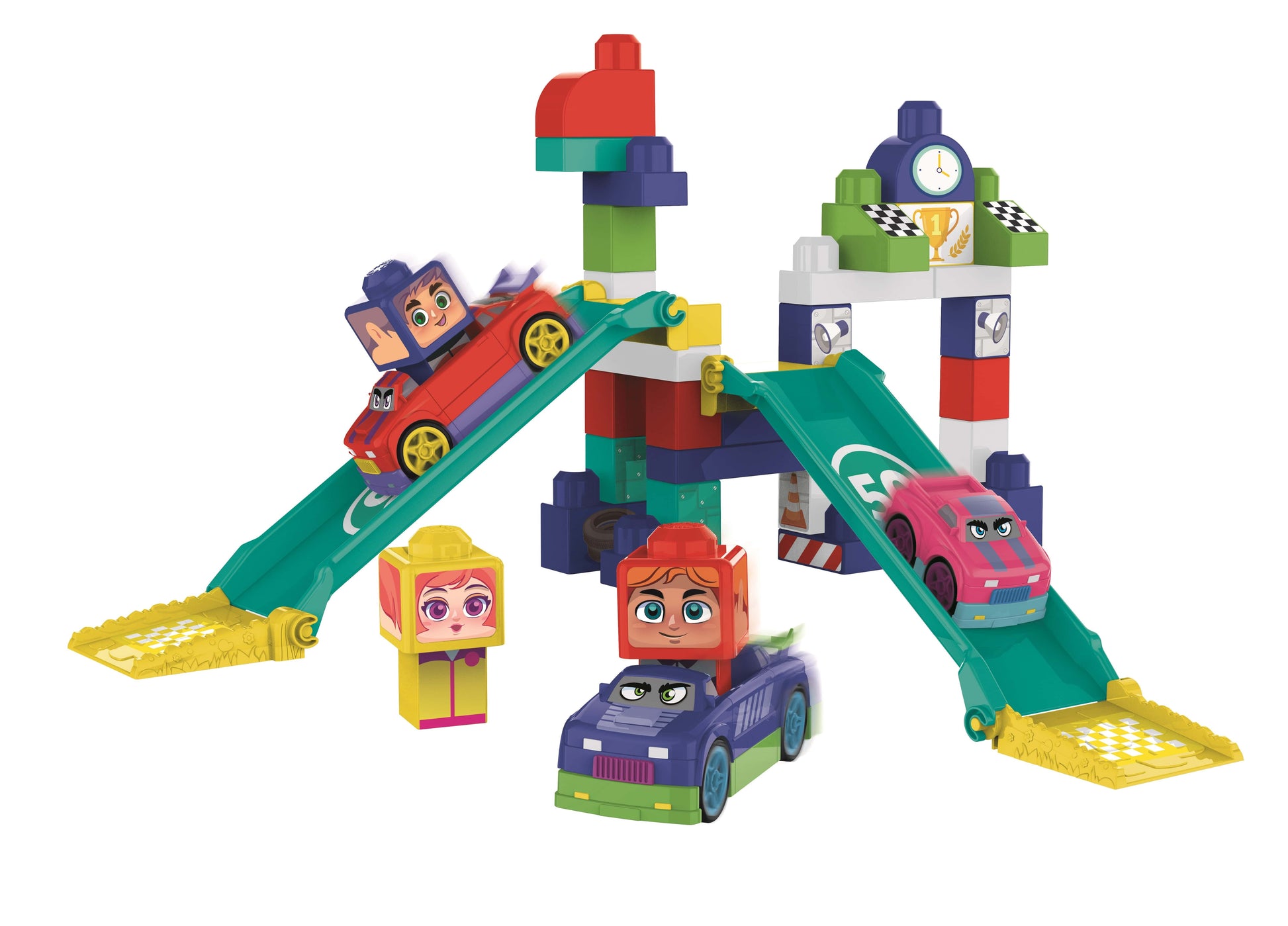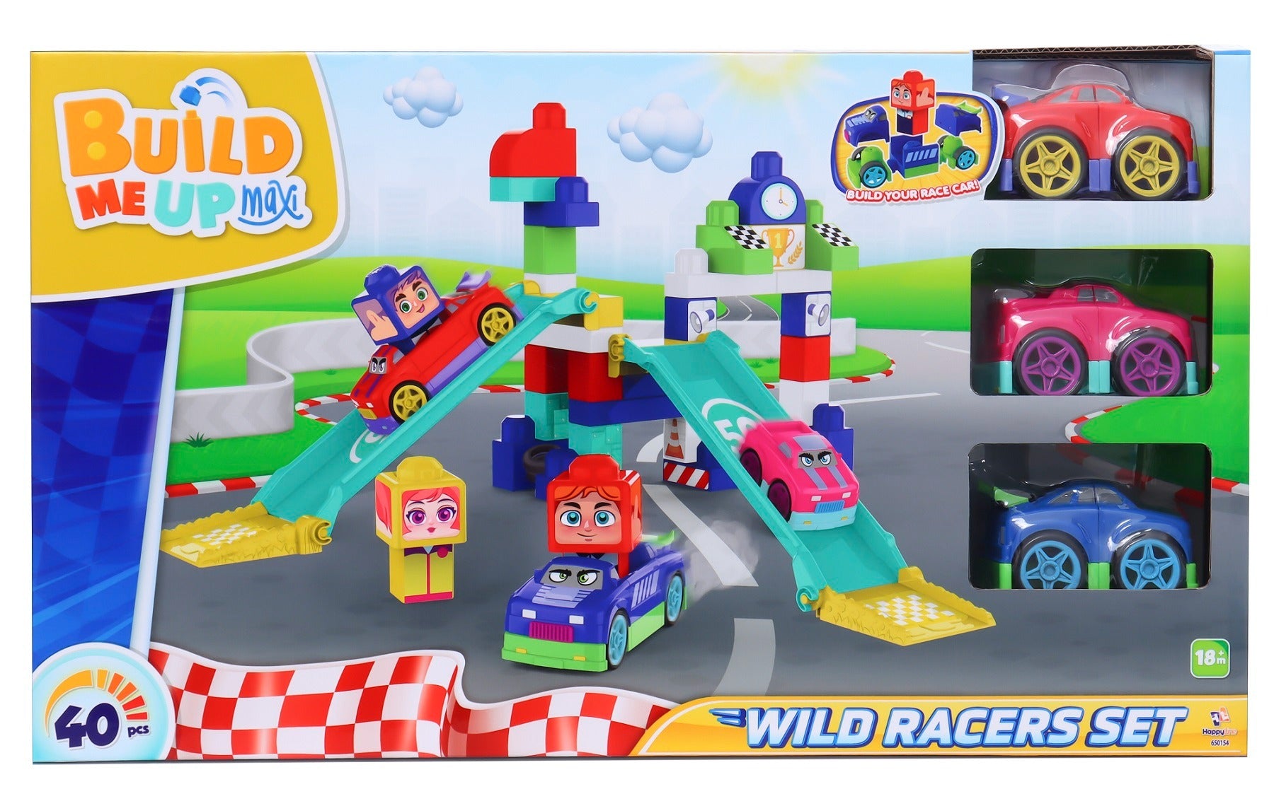 مسار السباق من مجموعة Build Me. - تحتوي هذه المجموعة على 40 قطعة. - تحسين المهارات الحركية وإنشاء قصص مسلية. - الأبعاد التقريبية للصندوق: الطول × العرض: 28 × 46. - الفئة العمرية المناسبة: 18 شهرًا فما فوق.