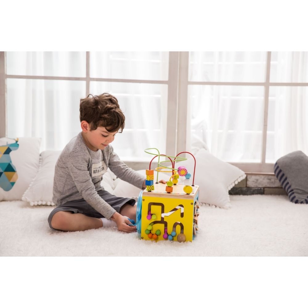 مكعب الأنشطة العالمي الكلاسيكي متعدد الأغراض. سيستمتع طفلك بلعب الأدوار ورواية القصص أثناء تحريكه للأشياء المستوحاة من عالم النقل على القضبان. تُساعد هذه المجموعة على تنمية المهارات الحركية الدقيقة لطفلك، وتُنمّي التنسيق بين اليد والعين. مصنوعة من مواد عالية الجودة. مناسبة للأعمار من سنتين فما فوق.
