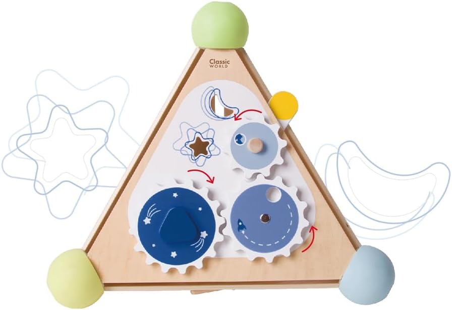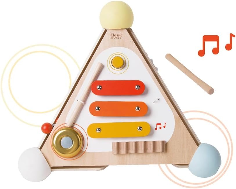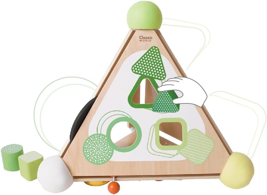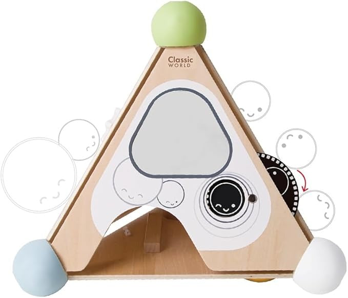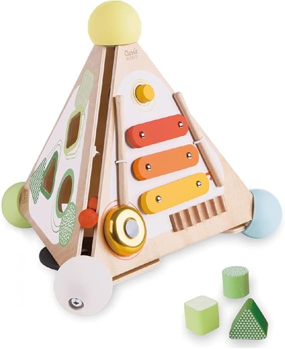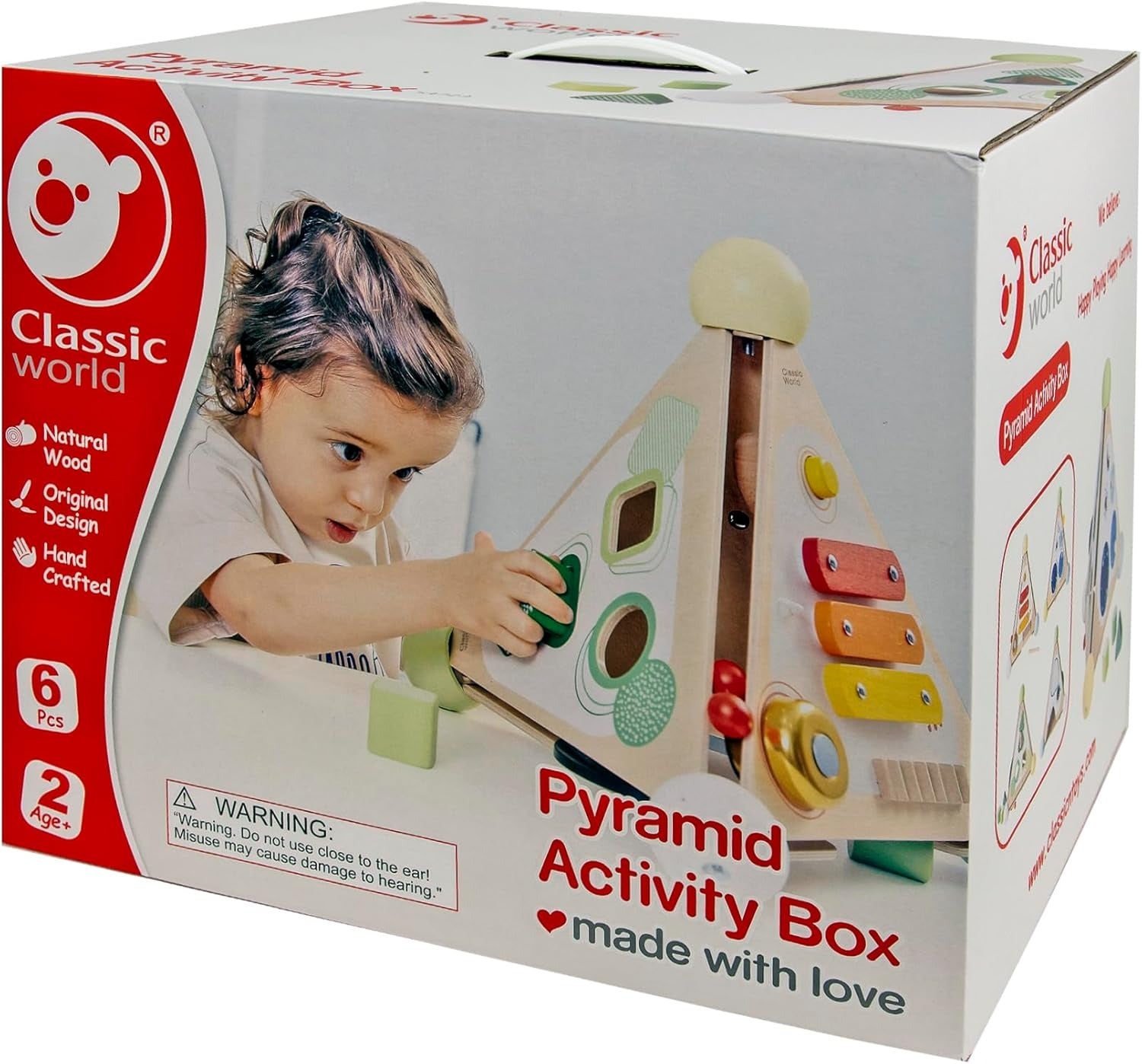 لعبة صندوق الأنشطة الخشبي الهرمي من كلاسيك وورلد ستمنح طفلك متعة لا حدود لها! صُمم صندوق الاكتشاف بتصميم رباعي السطوح، ويمكن دحرجته كالكرة في أي اتجاه دون أن ينزلق، ليتمكن طفلك من دحرجته بسهولة إلى الجانب الذي يفضله.